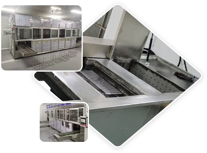 上料→超聲粗洗→超聲漂洗→吹干→下料